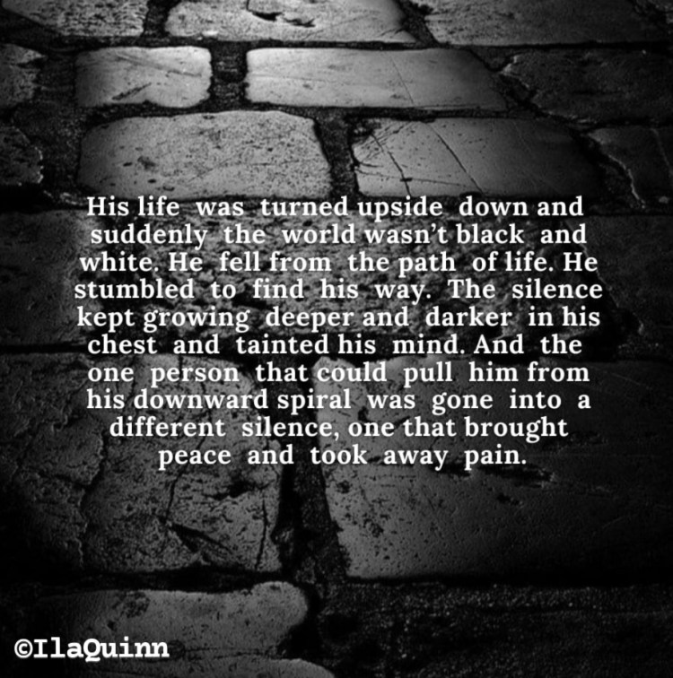 His life was turned upside down and suddenly the world wasn’t black and white. He fell from the path of life. He stumbled to find his way. The silence kept growing.